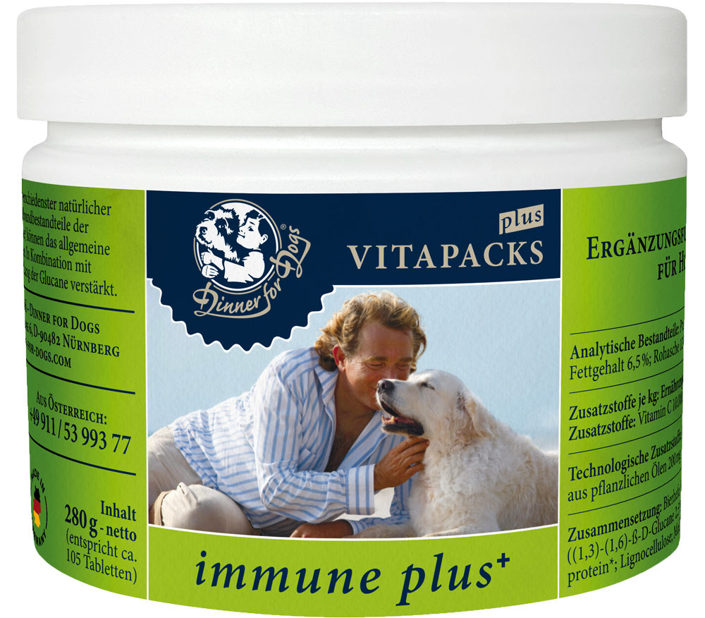 Die »Vitapacks Plus« ergänzen ideal die naturgesunden Premium-Frischemenüs und die Menüs der Premium Trocken-Vollnahrung. Einfach perfekt! Unsere »Vitapacks Plus« erhalten Sie auf Wunsch gemeinsam mit Ihrem Hundenahrungspaket - ohne zusätzliche Versandkosten.